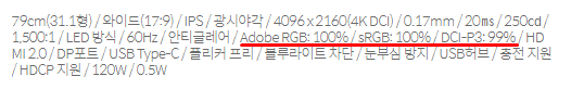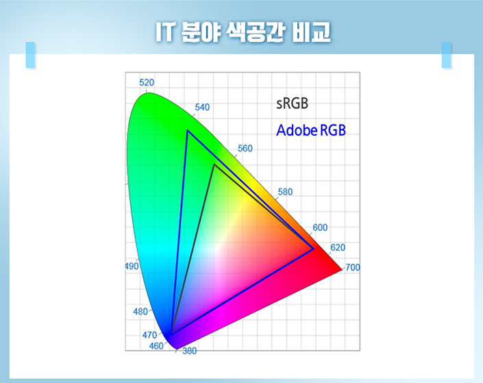 * Adobe RGB : Adobe社(그래픽 편집 프로그램 포토샵 제작사)가 1998년에 제안한 색공간입