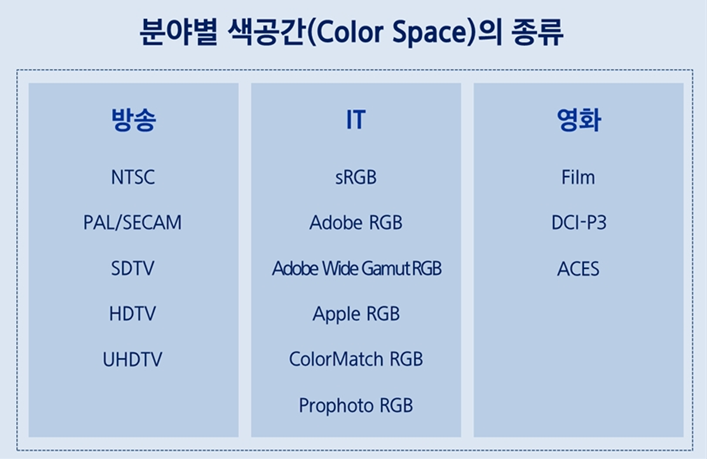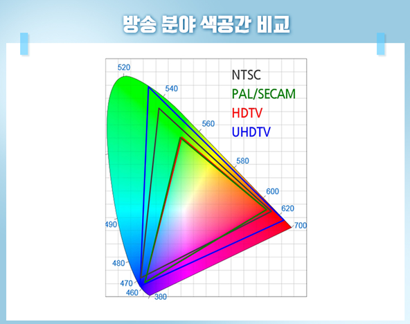 UHDTV의 색공간은 IT분야의 색공간인 sRGB, Adobe RGB와 영화용 규격인 DCI-P3 등 상용화된 대부분의 색공간을 수렴합니다.
