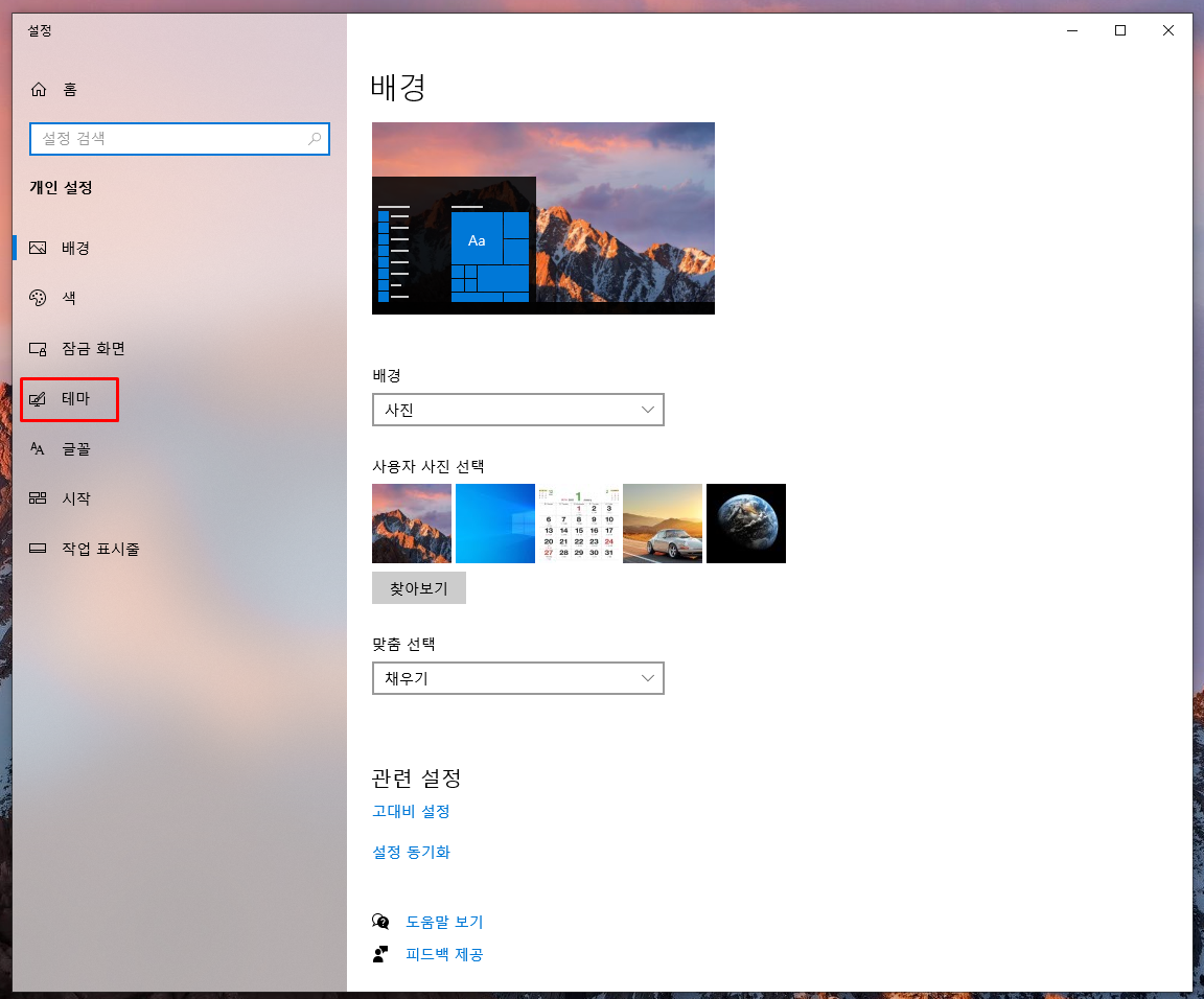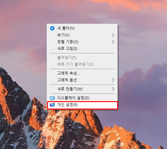 1. 마우스 우클릭 > '개인 설정' 클릭
