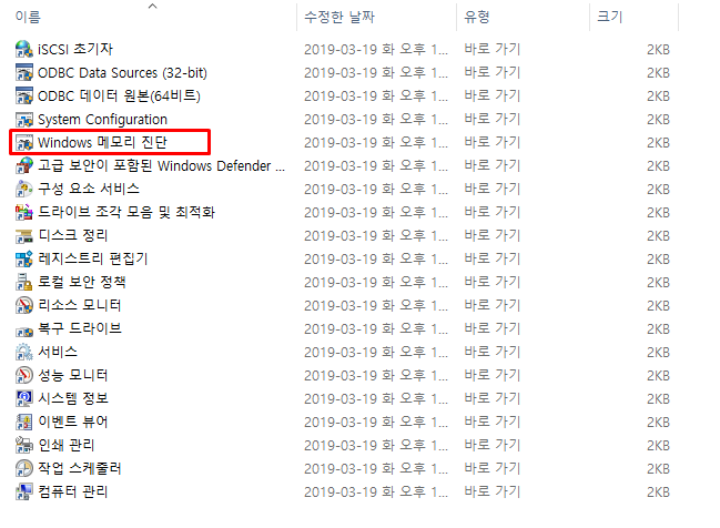 제어판 > 관리 도구 > Windows 메모리 진단 로 이동합니다.