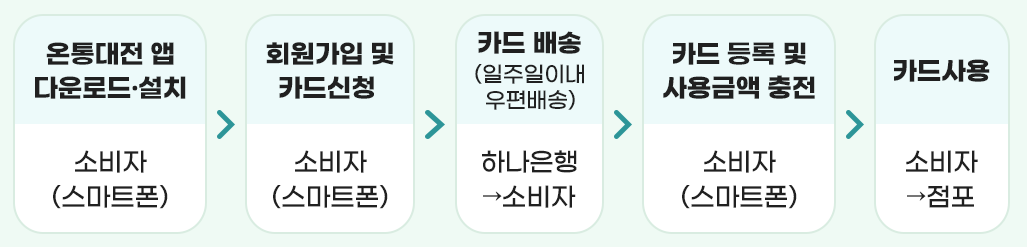 오프라인 신청 - 대전광역시내 하나은행 영업점 (방문 하여 발급 및 충전 가능합니다.)