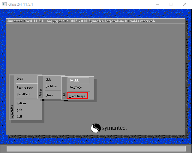 Local > Disk > Form Image : GHO 이미지 파일을 원하는 디스크에 복구시킴
