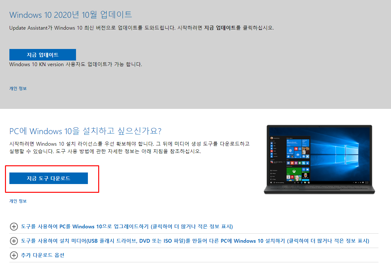 손쉽게 정품 윈도 10을 다운로드할 수 있습니다. 엄한 곳에서 헤매지 마시고