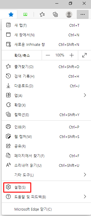 3. 밑에 그림과 같이 '설정'을 클릭합니다.