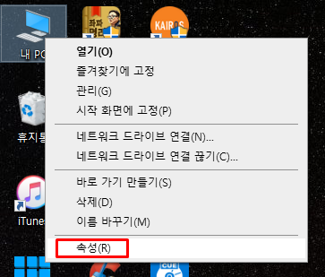 2-1. 탐색기 창 빠르게 열기 - 내 PC에서 오른쪽 마우스키 - 속성