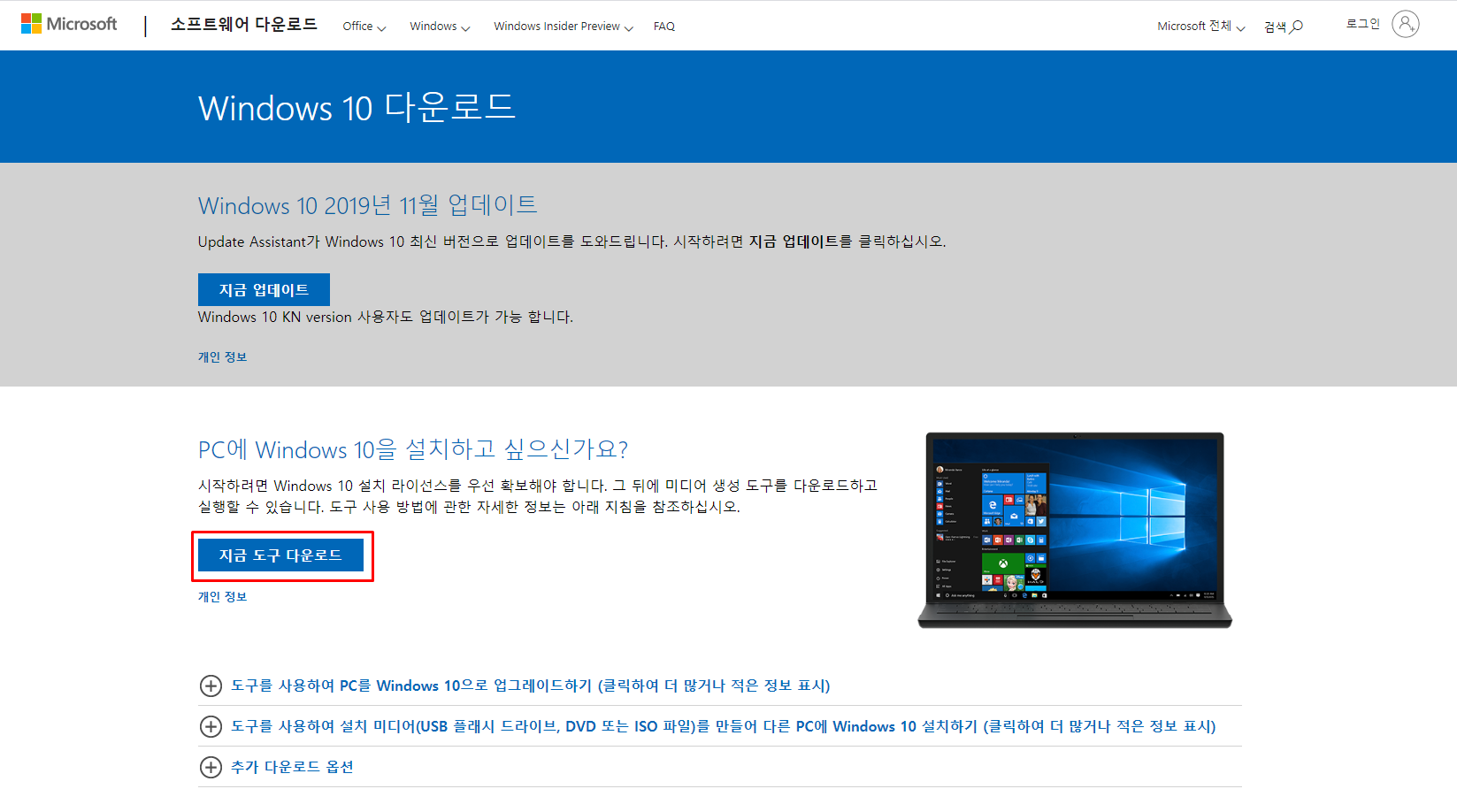 https://www.microsoft.com/ko-kr/software-download/windows10