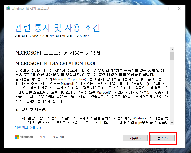 MediaCreationTool를 다운받아 실행하게되면