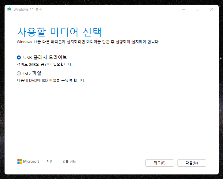 설치 이미지를 만들어 윈도우11를 설치할 수 있습니다.