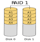 - 백업 목적으로 사용, 하나의 디스크가 문제가 생겨도 다른 하나의 디스크의 데이터는 정상사용 가능함