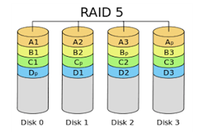 - 한 개의 드라이브가 고장 나는 것을 허용하며 순차적 쓰기(sequential write) 성능과 순차적 읽기(sequential read) 성능이 우수하다.