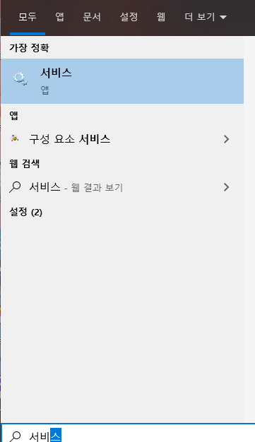시작 표시줄에 '검색' 누르고 '서비스'라고 입력합니다.