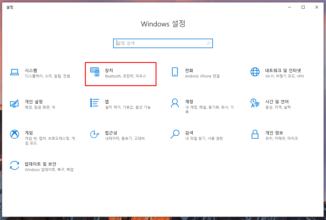 제어판에서 '장치' 클릭