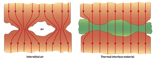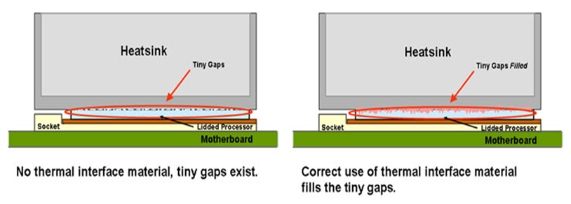 흔히 생각하길 매끈한 CPU 표면과 히트싱크(방열판) 바닥을 맞닿게 하면 된다고 생각합니다만 이 매끈해 보이는 표면도 자세히 보면 굴곡과 홈 등이 보이는 거친 표면을 가지고 있기 때문에 두 표면이 서로 온전히 접촉되지 못해서 그사이 공간이 남게 됩니다.